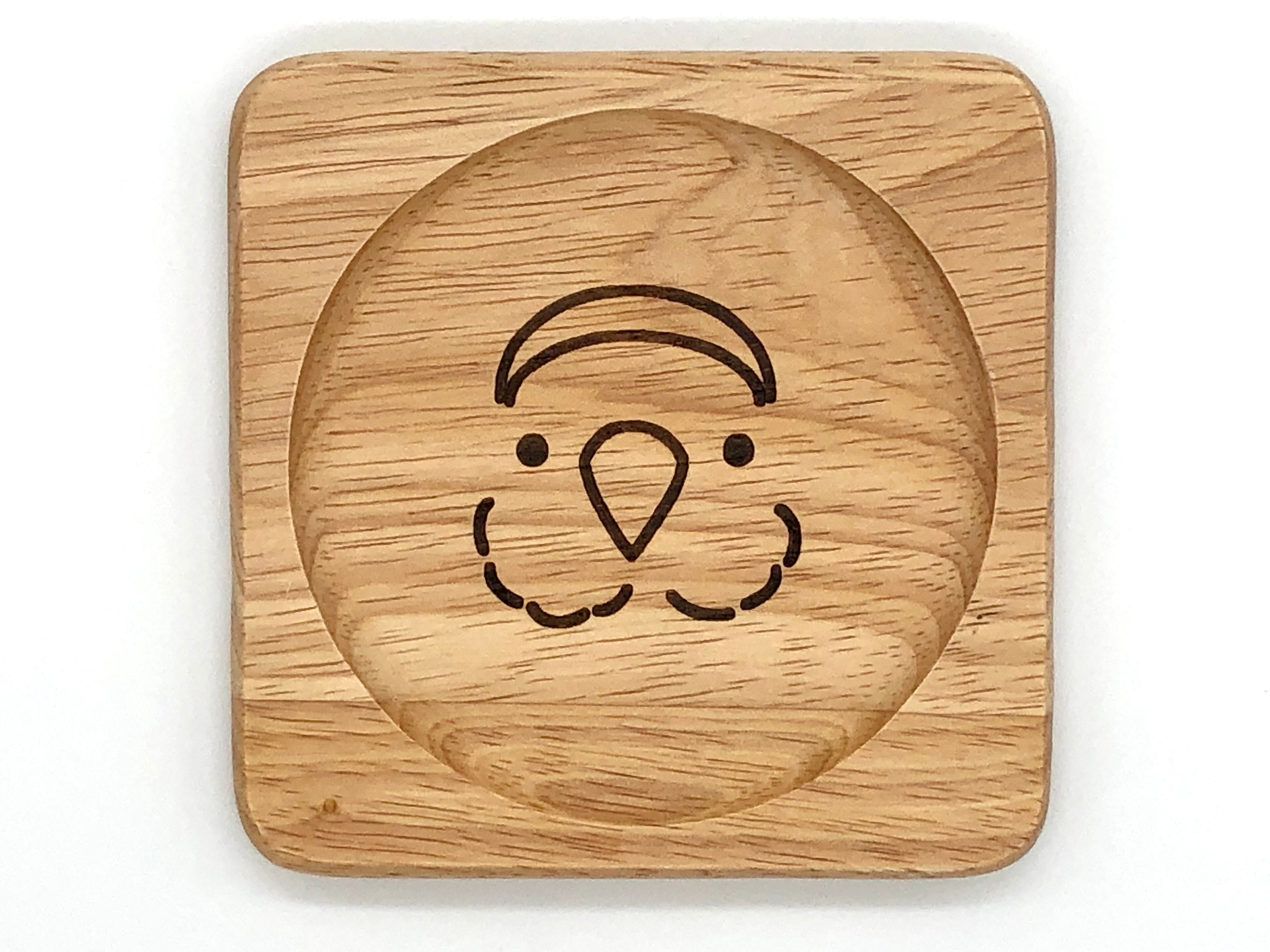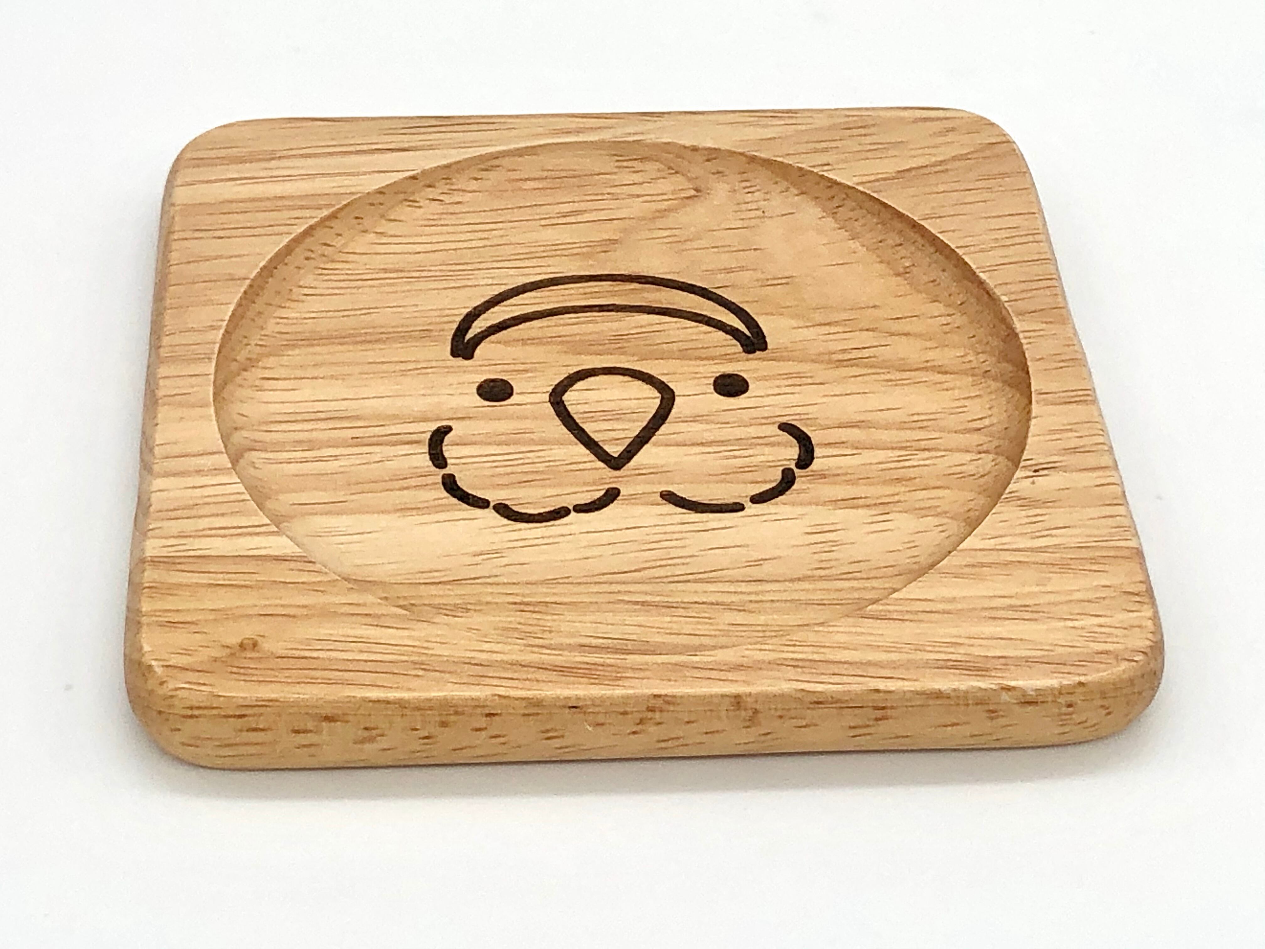 段差をつけ底部に可愛いコザクラインコの顔が焼付されています。