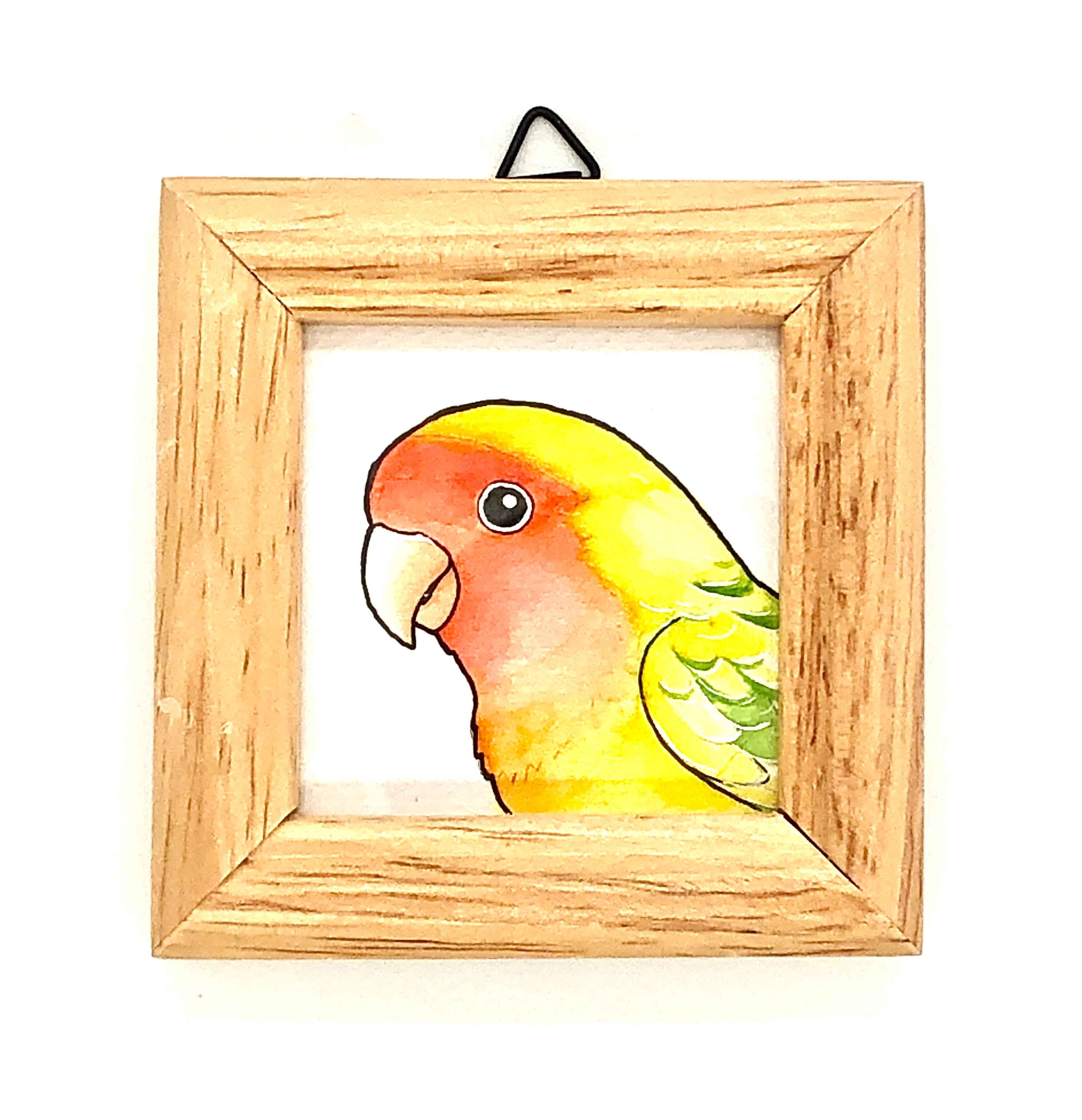 コザクラインコ タイガーチェリーパイド イラスト原画(木製額付き)