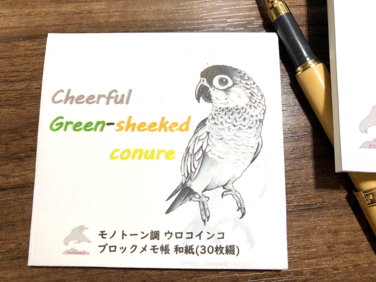 モノトーン調ウロコインコのブロックメモ帳(和紙30枚綴)