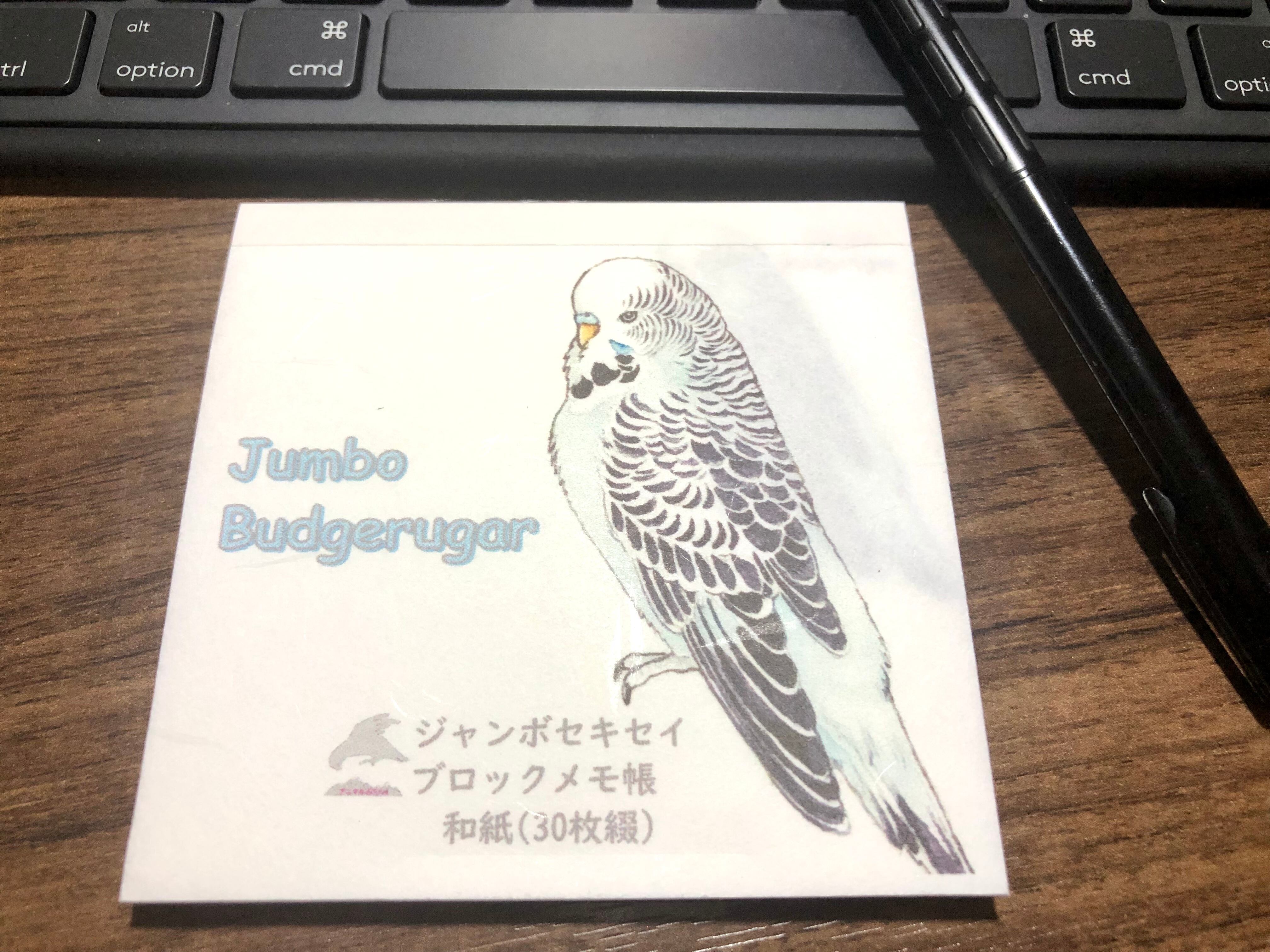 ジャンボセキセイインコ カラーイラストブロックメモ帳(和紙30枚綴)