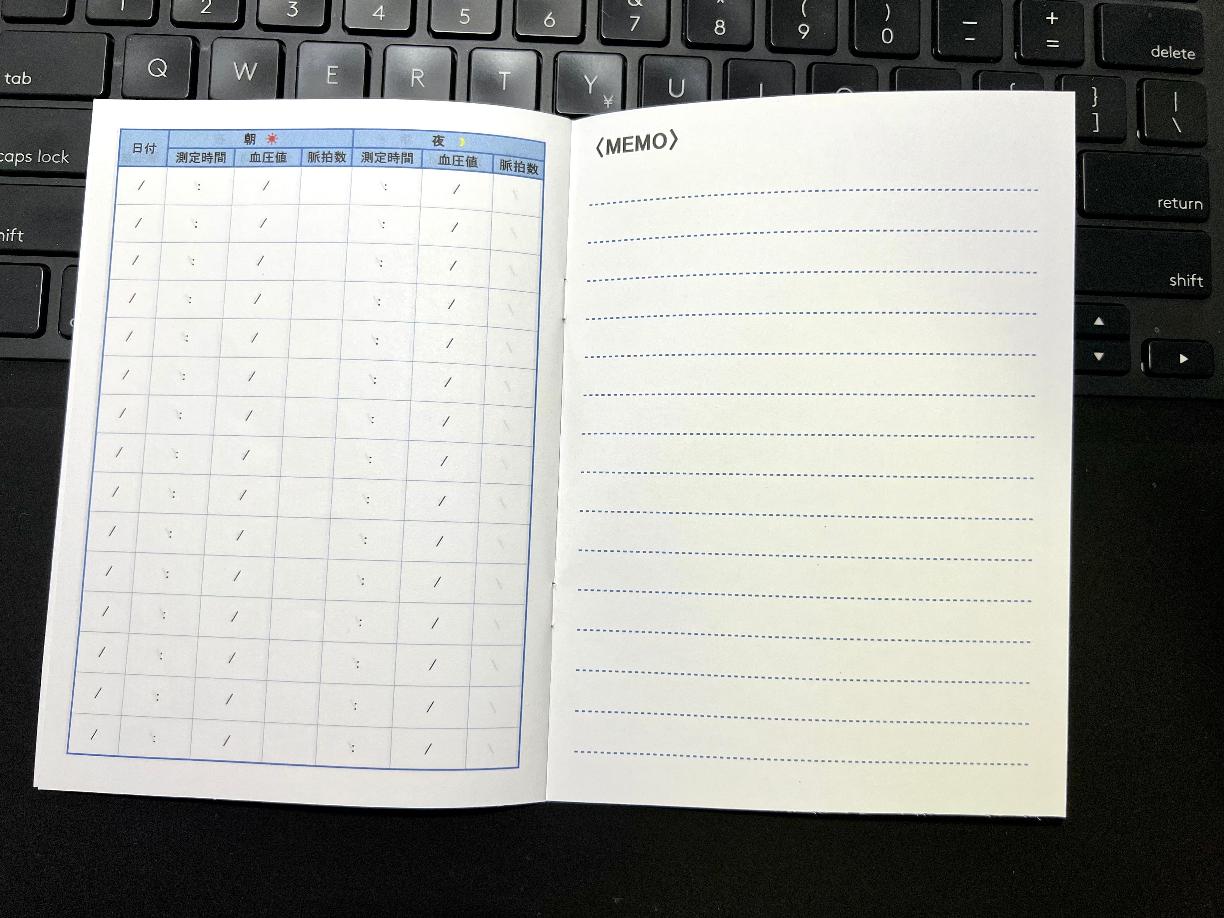 1ページ 15日分の記入欄で、160日分記入ができます。