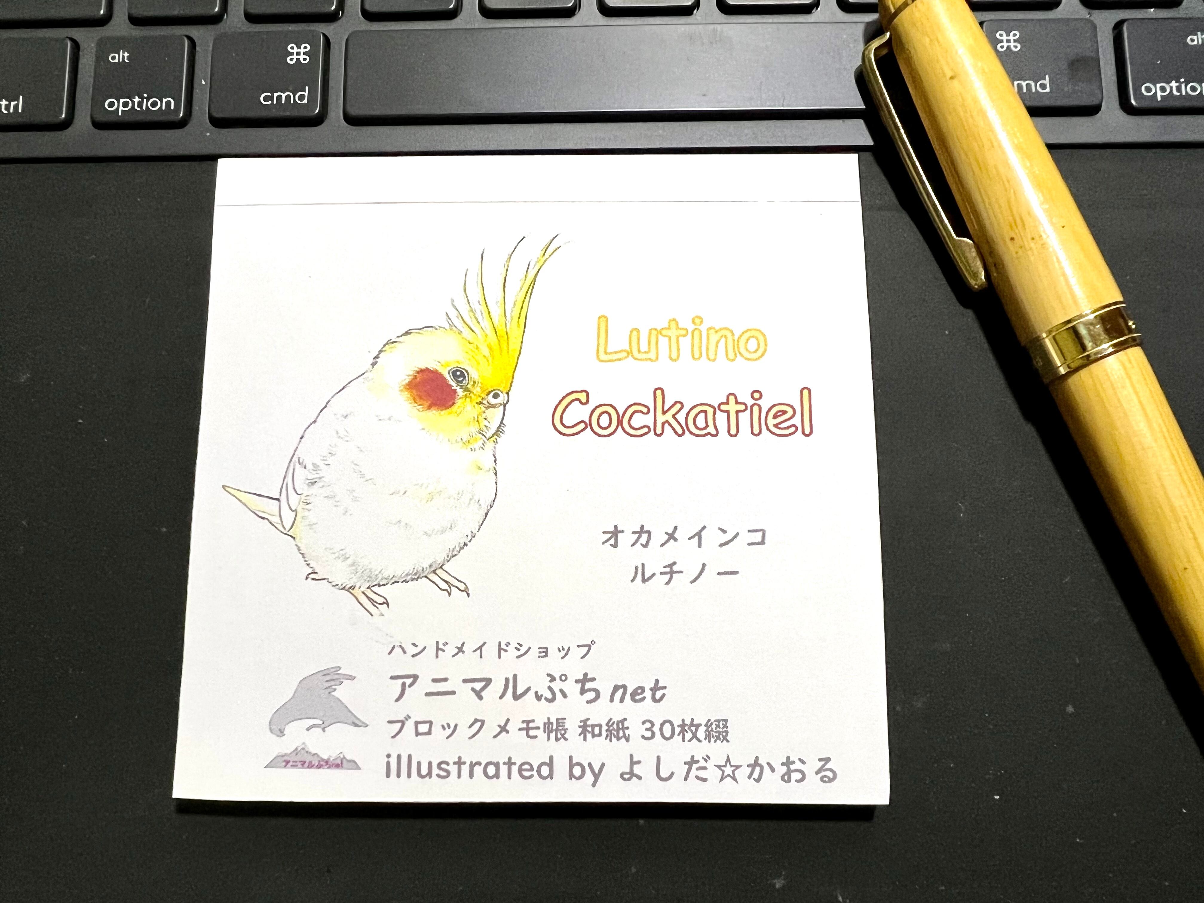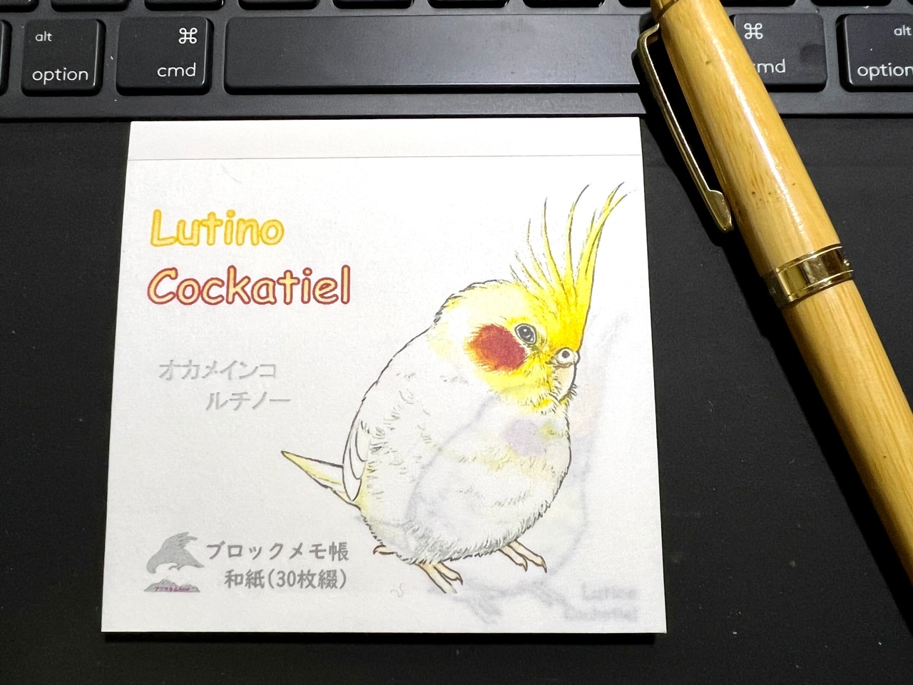 オカメインコ(ルチノー) ブロックメモ帳(和紙30枚綴)